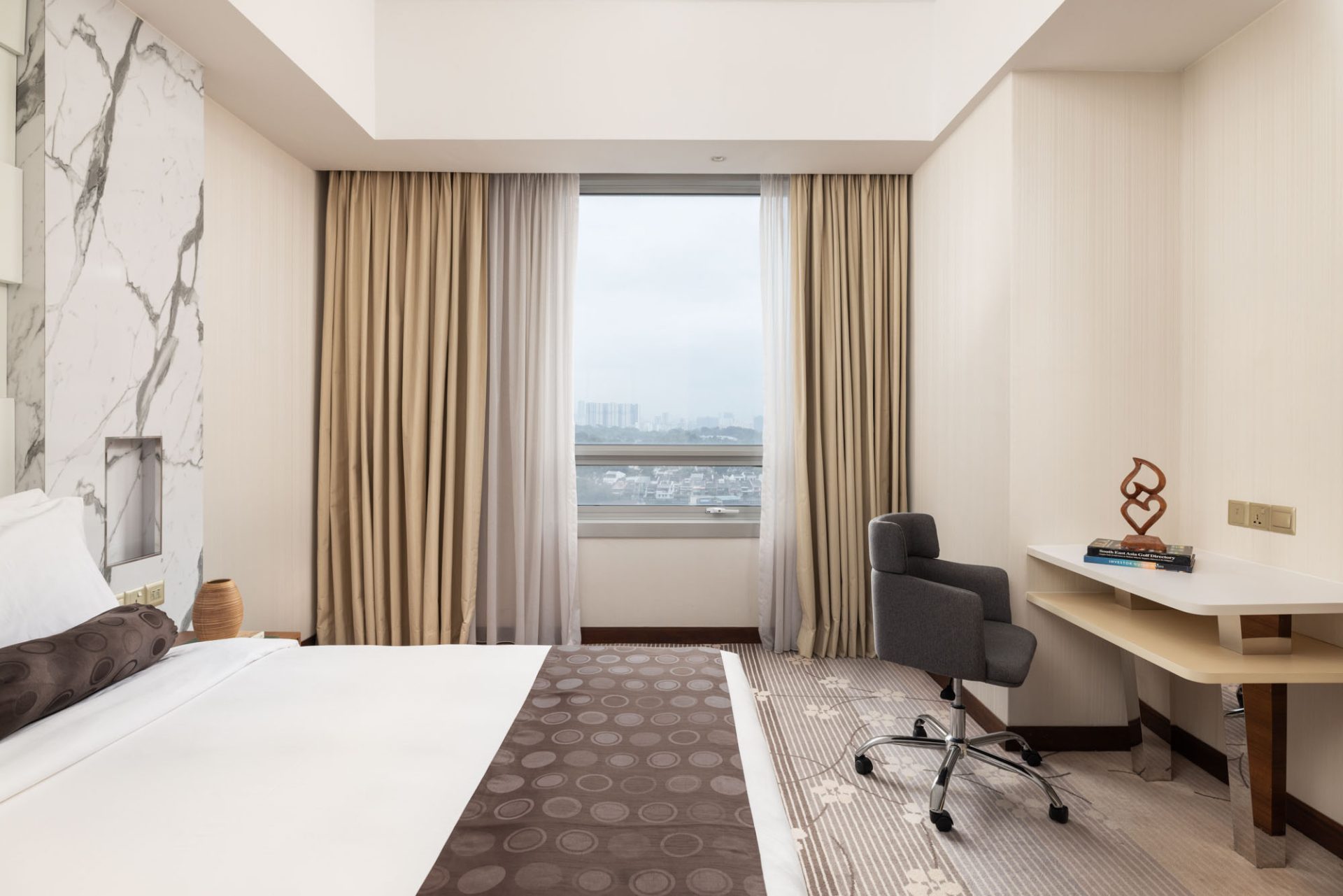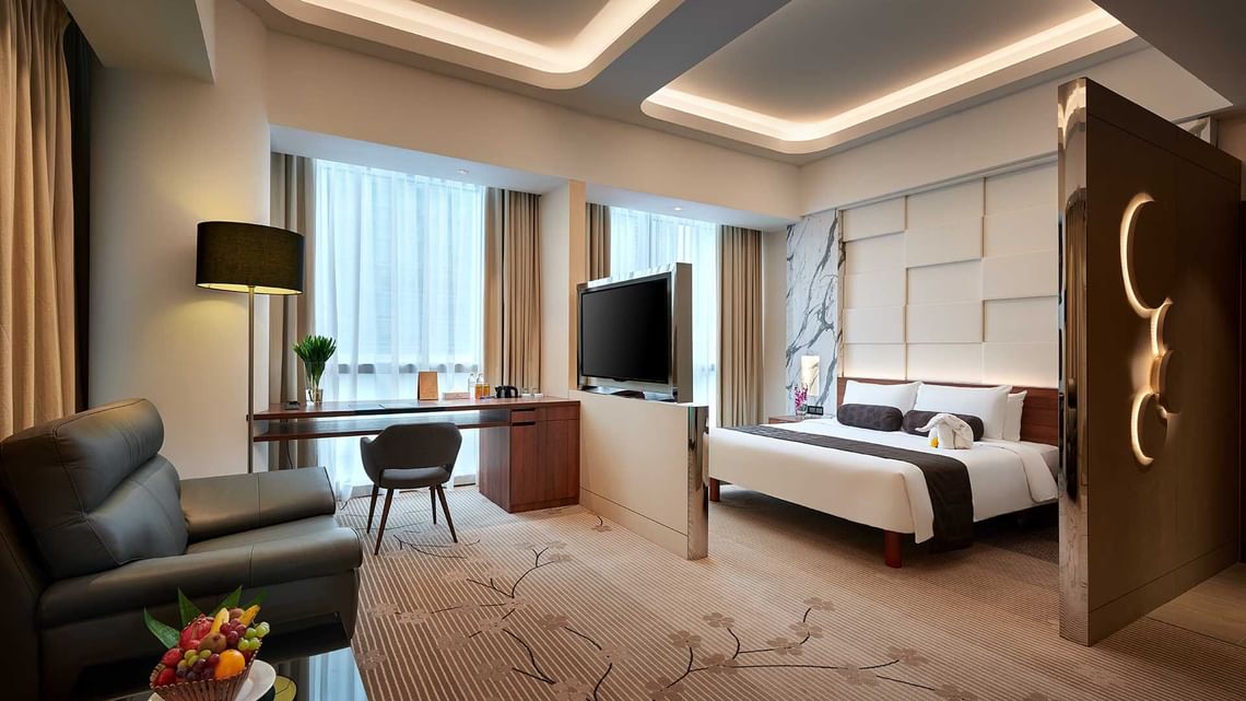 Enjoy our spacious, modern Suites, featuring views of the city’s skyline and a separate seating area. The room is approximately 69 sqm in size.